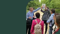 Unsere Mitarbeiter:innen erkundeten unser Haus, unseren Kiez und unsere Hauptstadt. Sie erlebten bei drei Spaziergängen das „P“, das „t“, und das „J“ auf einzigartige Weise: auf der „Politischen Laufbahn“, dem „Transformationspfad“ und dem „Janz-Weit-Weg“.