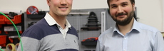 Martin Huber (r.) und Artur Steffen (l.), entwickeln in Düsseldorf eine neue Form der Energieerzeugung - die Nutzung industrieller und solarer Abwärme mittels eines neuartigen Werkstoffs, den Bipolymeren.