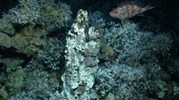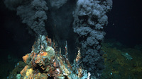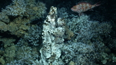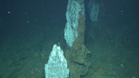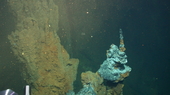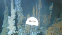 “A warm, shimmering fluid, which we sampled, was leaking out of fissures in some parts of this column," says Andrea Koschinsky. "We found bacteria mats and other life forms here in contrast to the otherwise very sparsely populated, fresh volcanic rock."