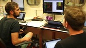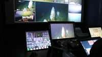 At this moment Cornel de Ronde enters and tells us that the ROV has found hydrothermal vents at Brothers Volcano. On the TV monitor we see thick clouds of smoke from the vents on the ocean floor. Valerie has to hurry to the ROV container to supervise sampling with the titanium majors. “I will oversee the sampling and make sure the samplers are working properly,” she explains as she leaves.