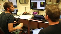 "Tonight, we discovered that the small cone has collapsed since the last mapping, and the only remaining nucleus is the old volcanic cone." The echo sounder showed a column of about 90 meters in height on the sea floor; this column reflects the sound signal differently than normal sea water. "This is a very unusual structure, so, it was not clear at first whether it was a volcanic eruption or a rock structure.