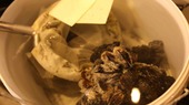 In the evening the ROV brings rocks and a sample of sulfur on board and “many water samples that smell like rotten eggs,” according to Andrea Koschinsky.