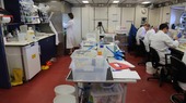 After we settled into our new home of the comfortable cabins on board, we quickly started to unpack the containers and move the gear into the various labs onboard the ship and secure everything for departure the next morning.