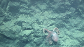 “My personal highlight today was the snow covered landscape,” remarks Andrea Koschinsky. And indeed the underwater pictures transmitted by the ROV look like a snow covered forest clearing. “The colours down here have a blue shift because it is deeper, and the light sediments sparkle white like fresh snow,” the chief scientist continues. “The shrimp gliding through the water look, in the spotlight, like large snowflakes.”